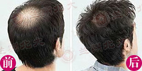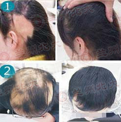 治疗前后对比图 诊治针对黄宏的病情,检测病因后,给黄宏采用的是该院独创的"BMP(生发细胞酶)激活疗法",一方面内服特制中药,另一方面用外用中药成分生发洗剂,辅以中药熏蒸和纳米波照射,15天后斑秃止住了,头上开始有毛茸茸的细软头发长出。